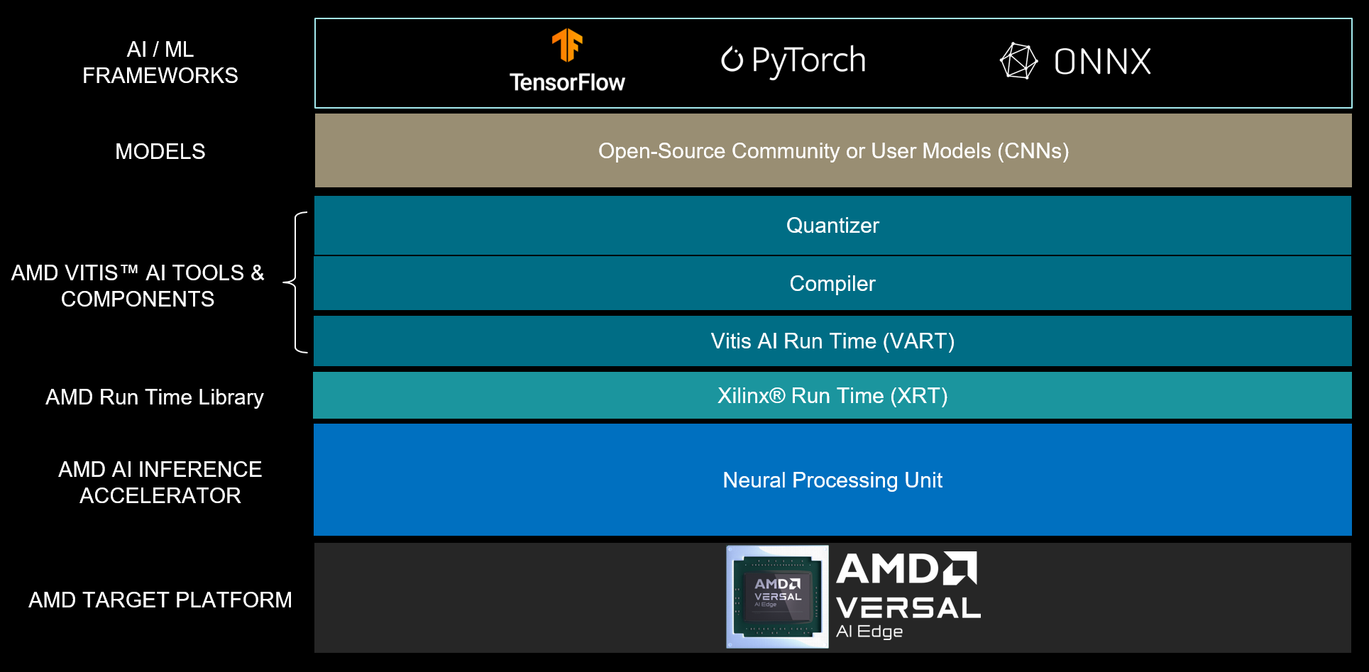 Vitis AI provides NPU IP and aiding tools to deploy both standard and custom neural networks on AMD’s adaptable targets.