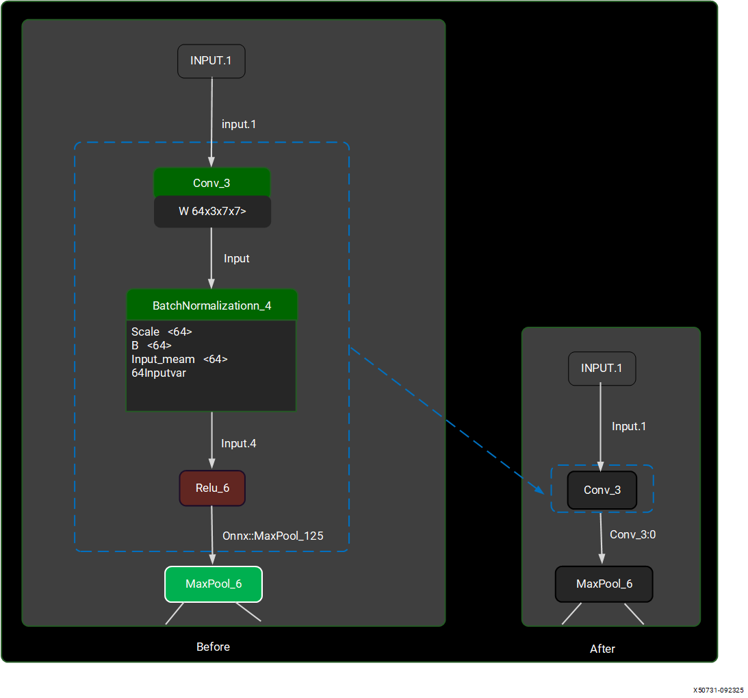 It is important to note that sub-graphs are only generated after the compilation stage. You can use a visualization tool such as Netron to analyze the layers within the neural network model. These sub-graphs are simplified using a set of tools, including ‘pattern matching search and replace,’ provided by the Vitis AI NPU software stack. The goal is to ensure that as many operators as possible can run on the device. For example, the ‘Convolution (Conv_3),’ ‘Batch Normalization (BatchNormalization_4),’ and ‘Activation (Relu_5)’ layers are combined into a single ‘Convolution (Conv_3)’ layer.