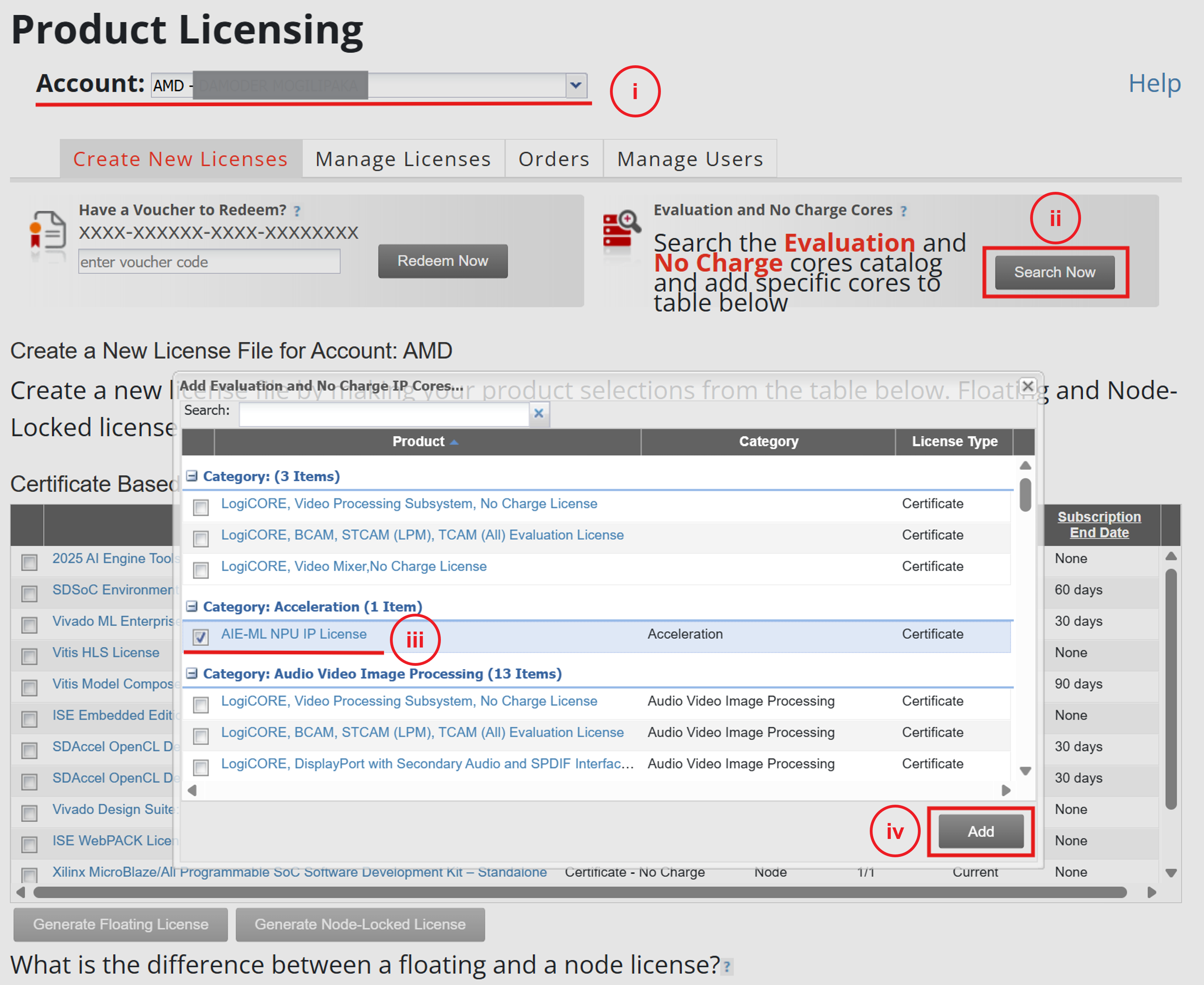 To build the Vitis AI reference design, you must obtain and install the NPU IP license. Refer following steps to obtain the NPU IP license.